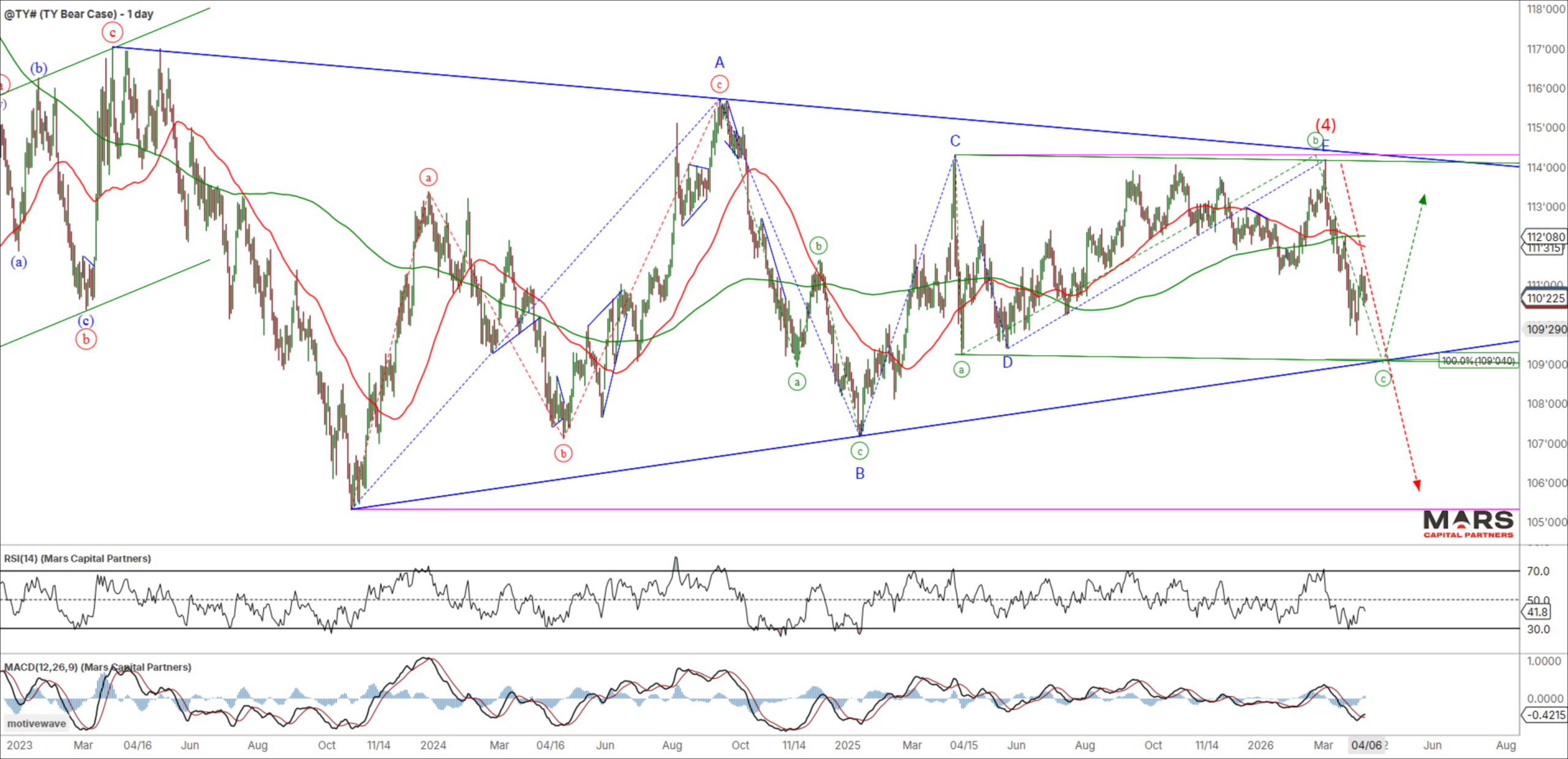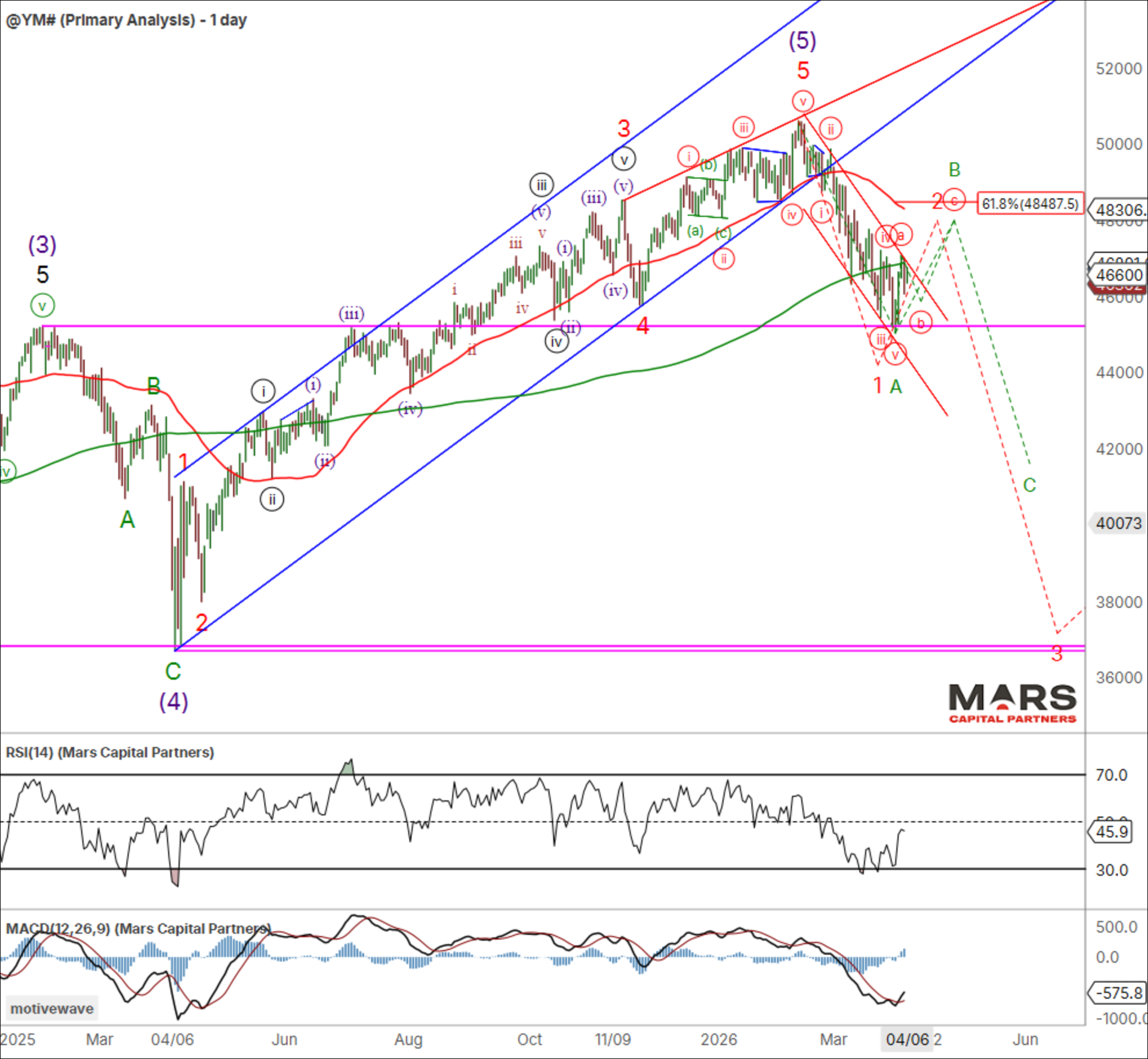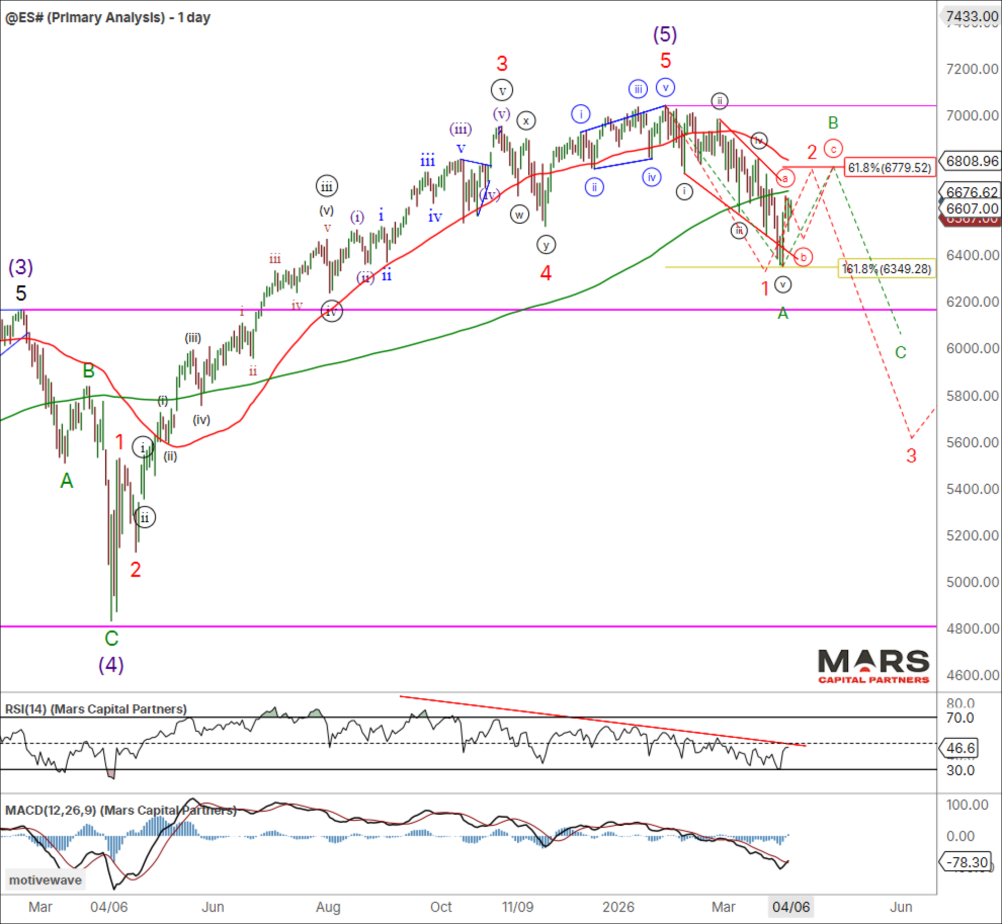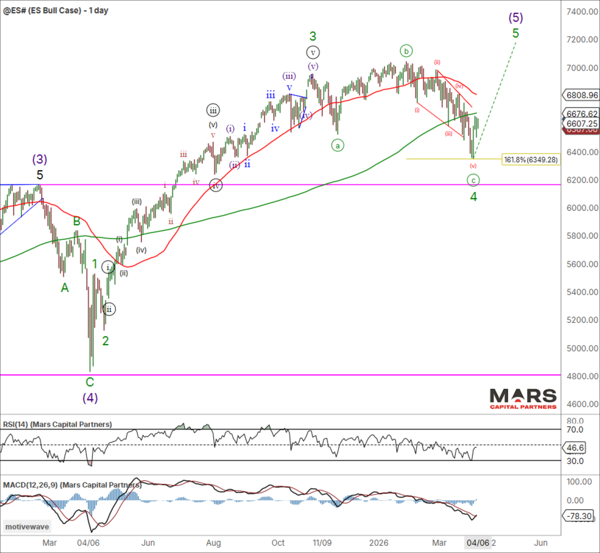 What if we’re wrong and the latest SPX / ES decline completed wave (c) of 4 with a final wave 5 to new ATH’s now on deck? While lower probability (and not our base case), we should be aware of the potential if Trump is successful and the Hormuz Straight clears. We should be aware that any push to marginal new highs is likely an ending wave.